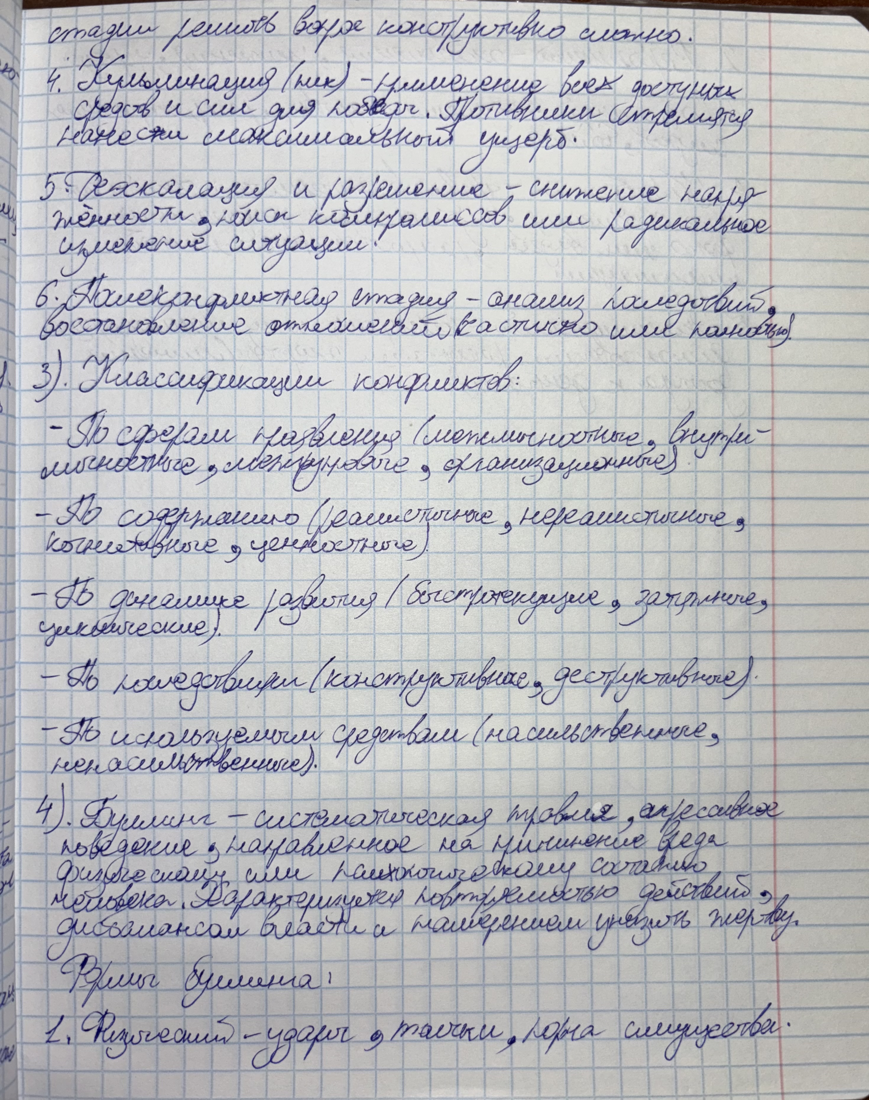 1 Конфликт. Основные характеристики конфликта. 2 Стадии развития конфликта. 3 Классификации конфликтов. 4 Булинг и его формы.