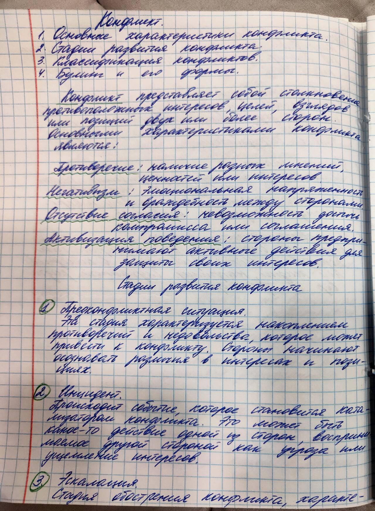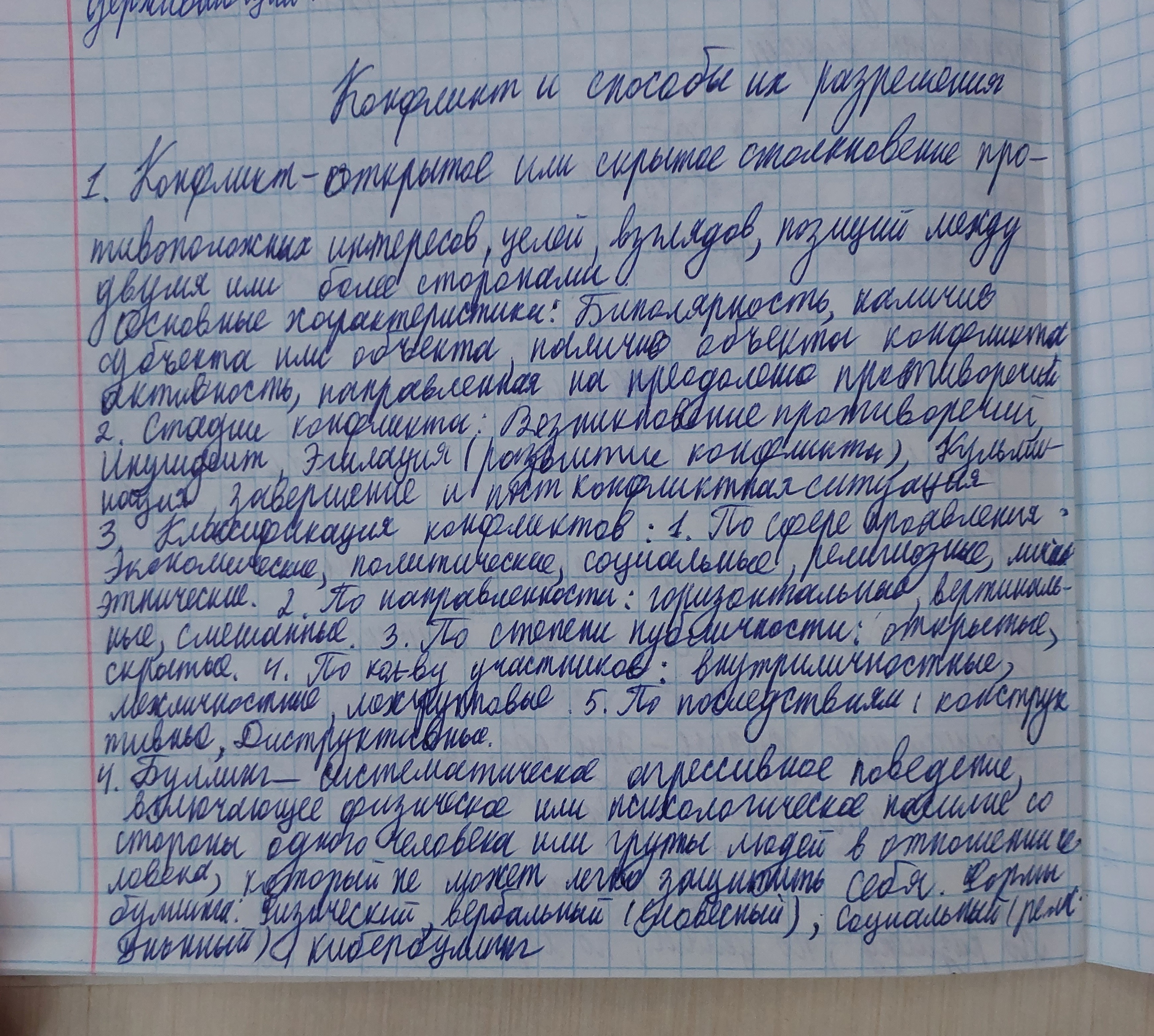 1 Конфликт. Основные характеристики конфликта. 2 Стадии развития конфликта. 3 Классификация конфликтов. 4 Булинг и его формы.