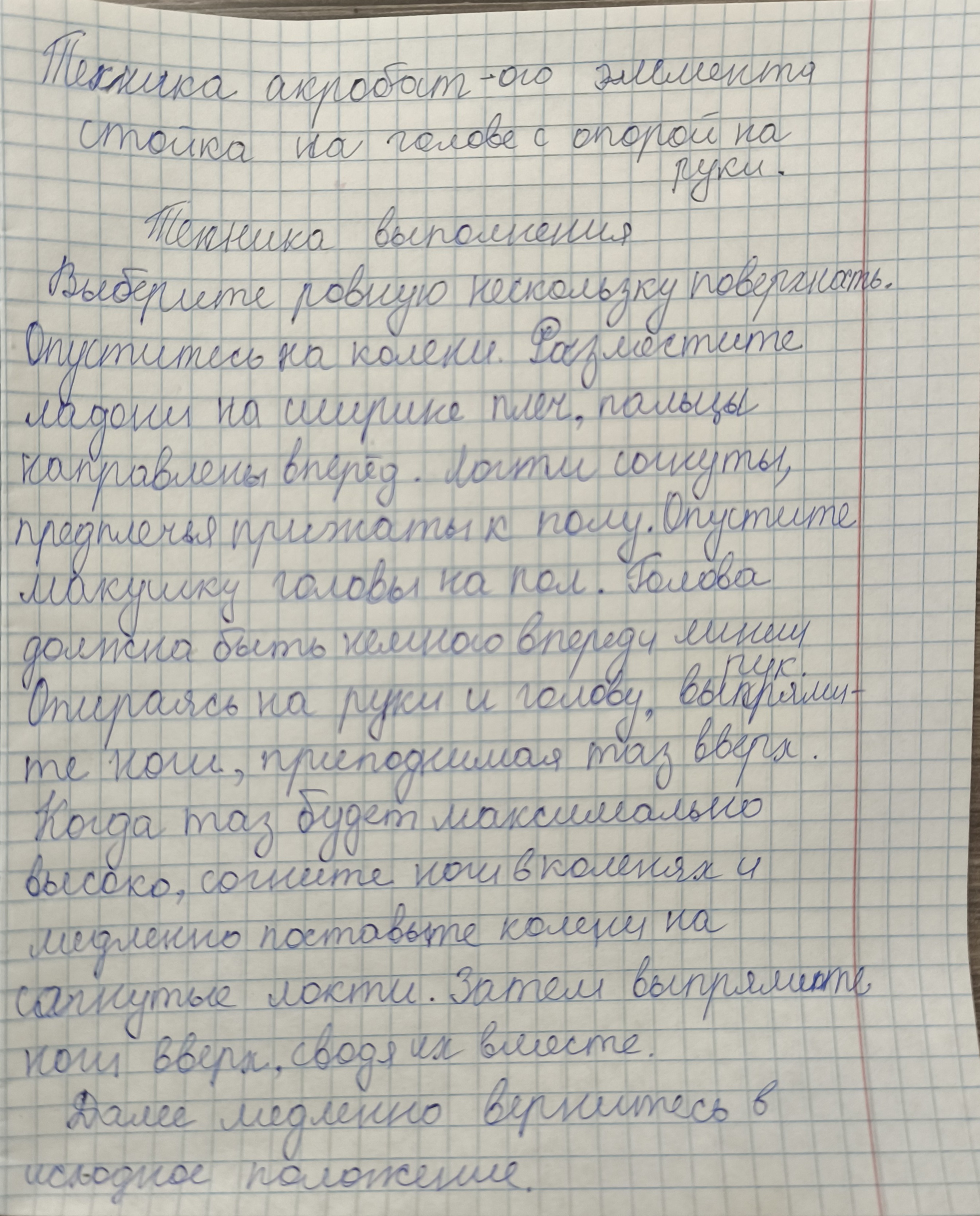 24.11 Техника акробат-ого элемента: стойка на голове с опорой на руки