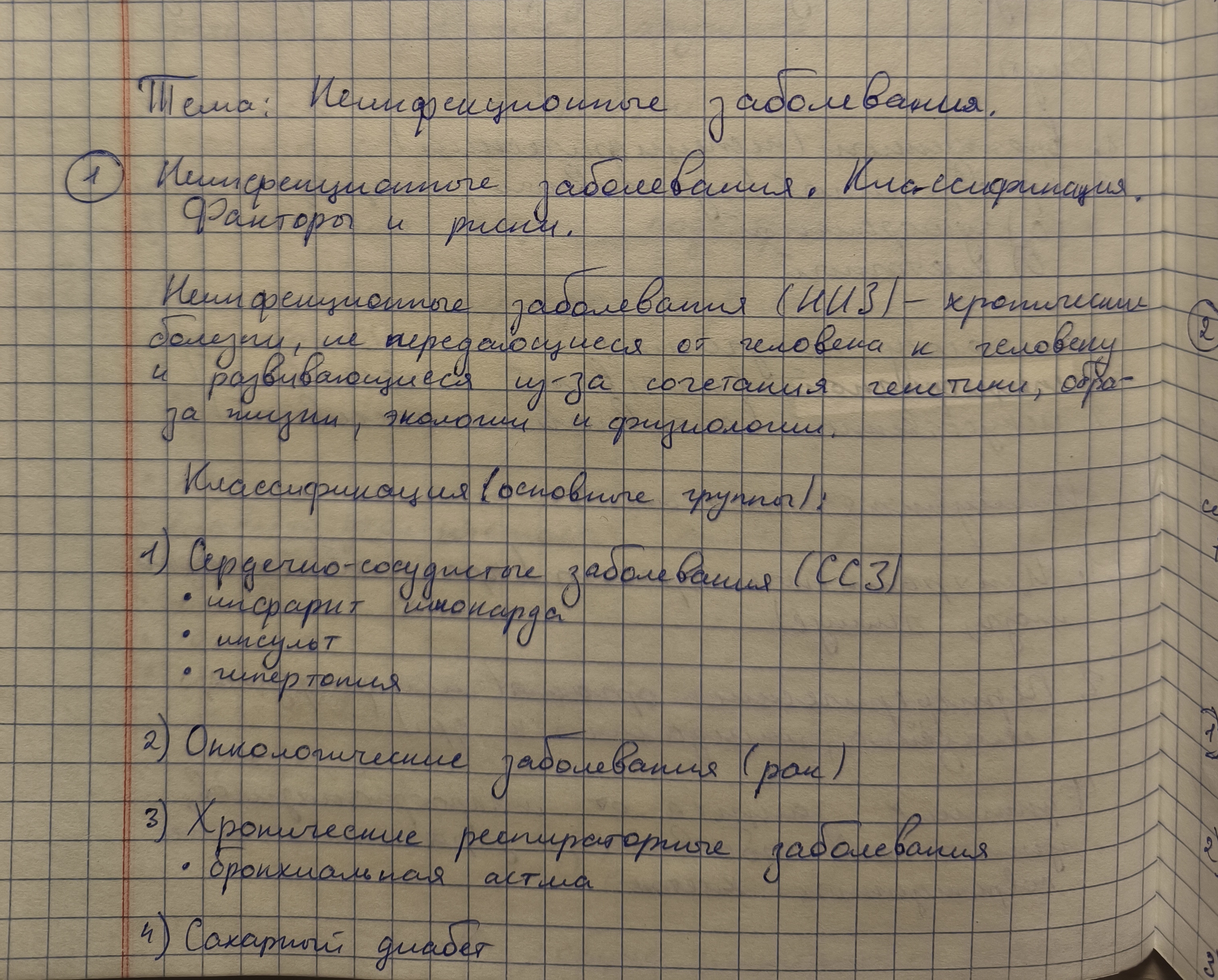 1 Неинфекционные заболевания классификация, факторы и риски неинфекционных заболеваний.2.Сердечно сосудистые заболевания, онкологические заболевания, причины.3.Дыхательные заболевания и сахарный диабет их причины.4.Профилактика неинфекционных заболеваний.
