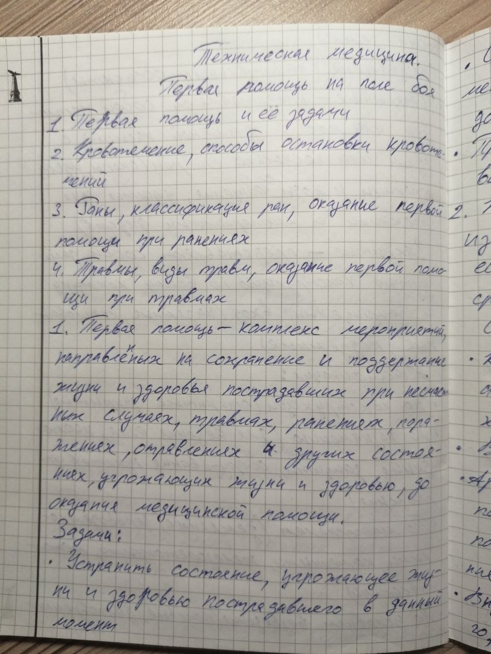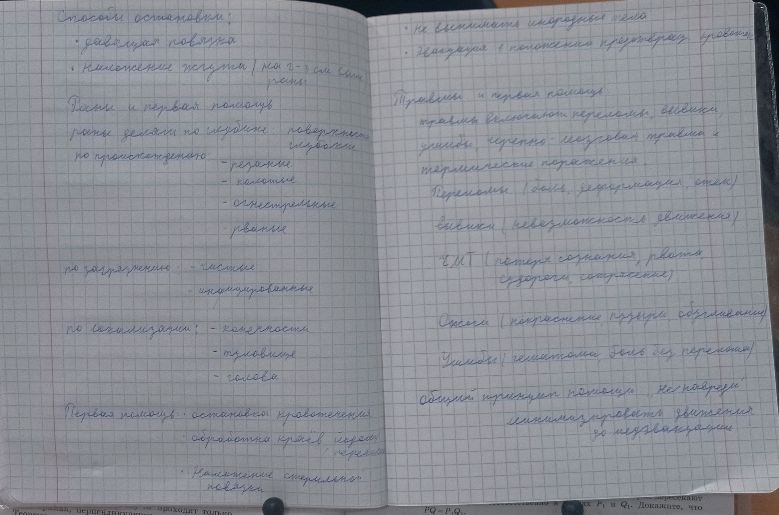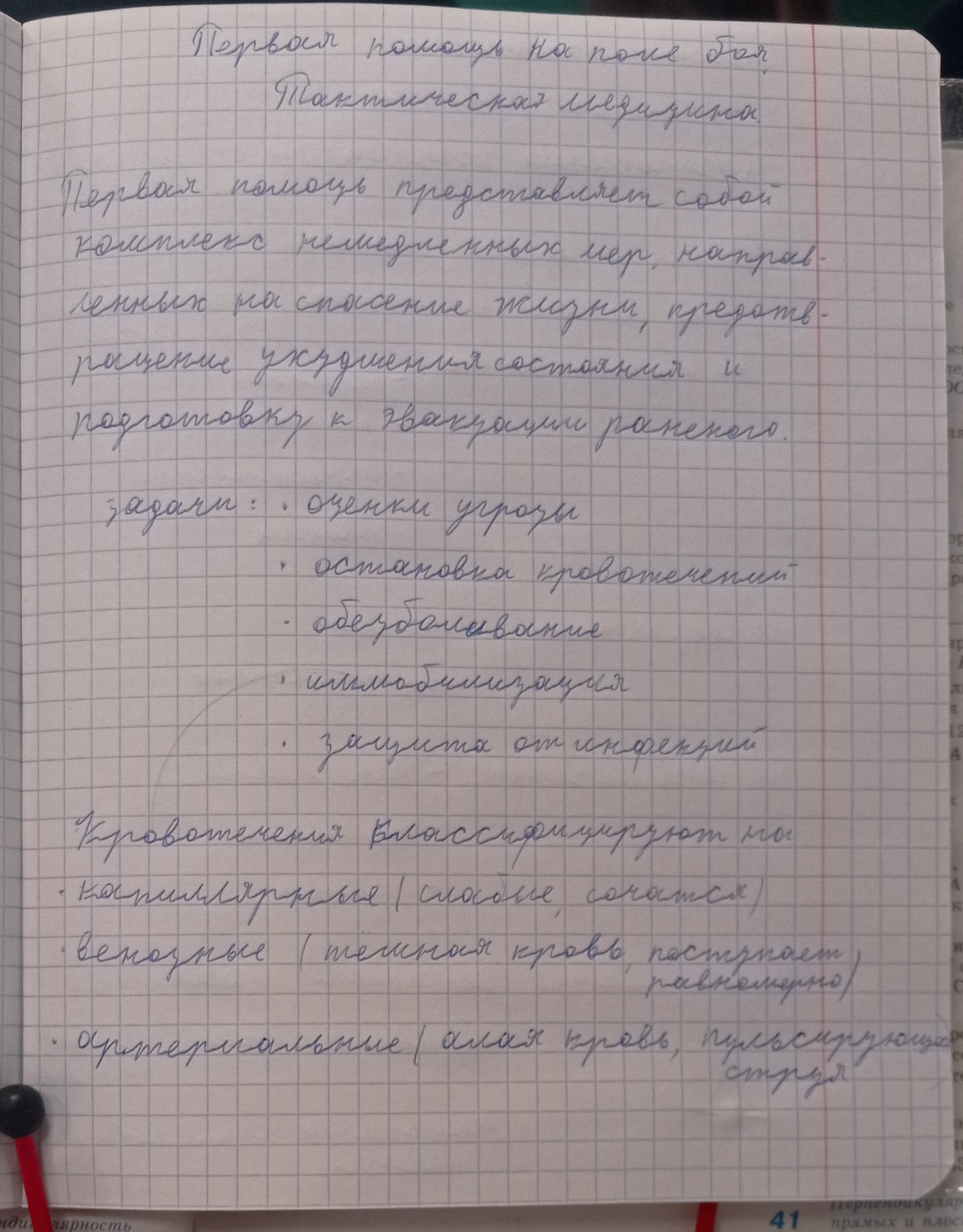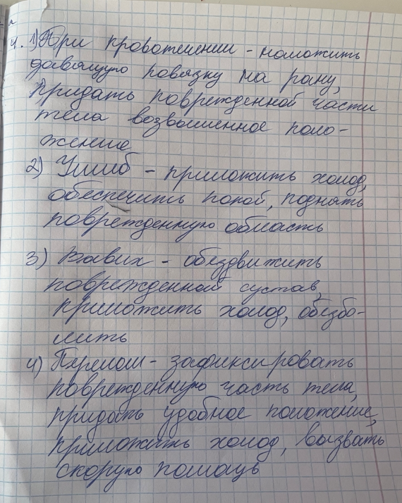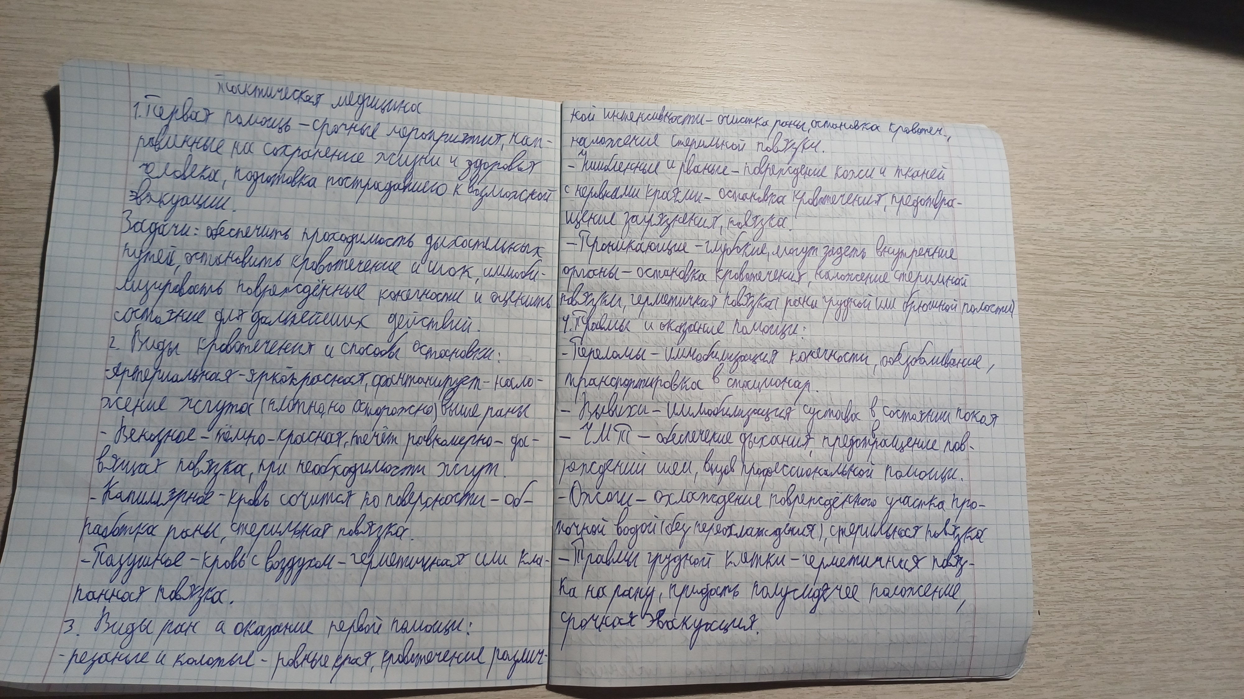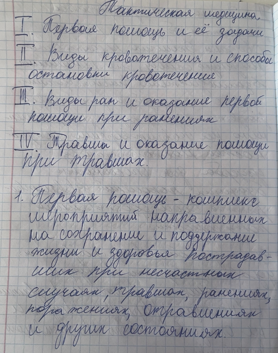 1.Первая помощь и ее задачи. 2.Кровотечения способы остановки кровотечений. 3.Раны,классификация ран, оказание первой помощи при ранениях.4.Травмы, виды травм, оказание первой помощи при травмах.